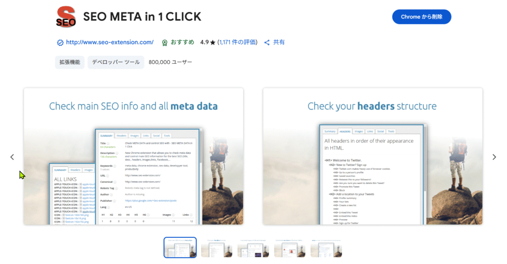 競合サイトの構成を参考にしたり、自分の記事が検索エンジンにどのように認識されているかを簡単に確認したりできます。記事公開前に、見出し構成が想定通りになっているか、メタディスクリプションが設定されているかを最終確認する際にも強力な機能です。